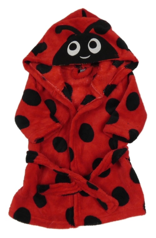Červený chlupatý župan s kapucí - beruška