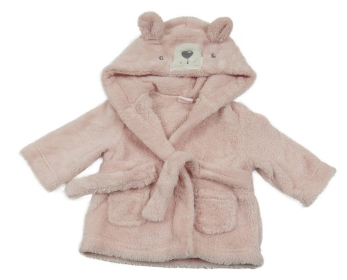 Světlerůžový chlupatý župan s kapucí - medvídek