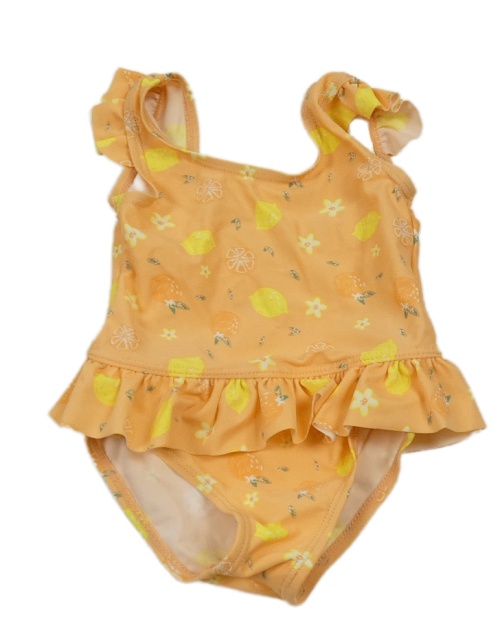 Oranžové plavky s citróny a květinami s volánky Vertbaudet