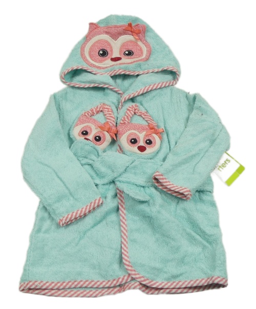 Nové - 2set - Tyrkysový froté župan s kapucí - sova + capáčky Carter's
