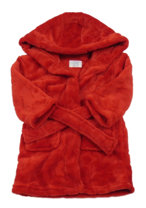 Červený chlupatý župan s páskem a kapucí Primark