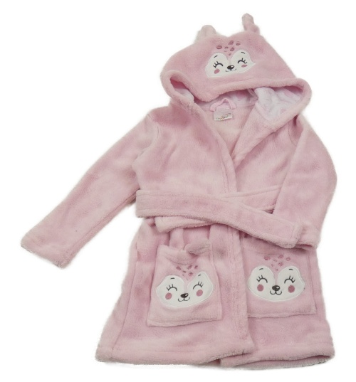 Světlerůžový chlupatý župan s liškami a kapucí