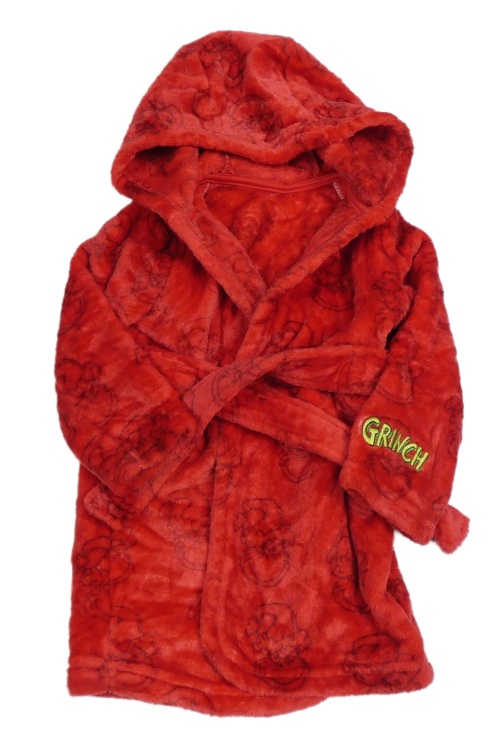 Červený chlupatý župan s Grinchem a kapucí George