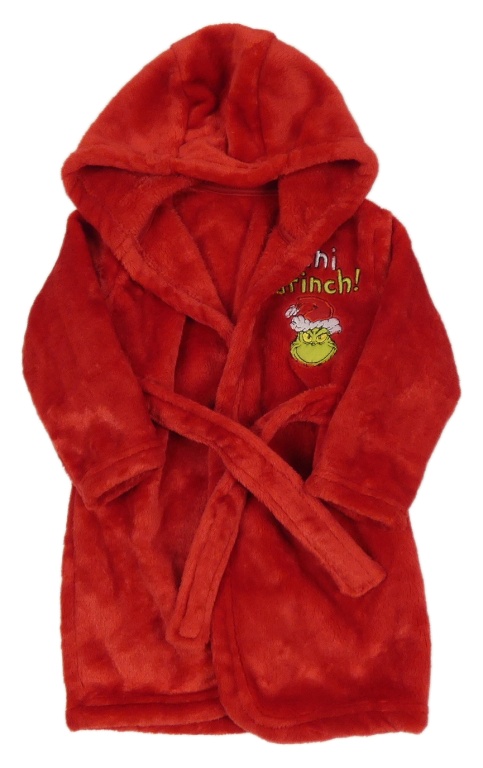 Červený plyšový vánoční župan s Grinchem a kapucí George