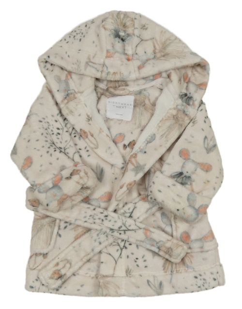 Světlerůžový plyšový květovaný župan s myškami a kapucí n