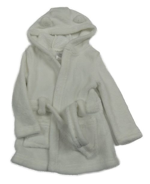 Bílý chlupatý župan s kapucí s oušky