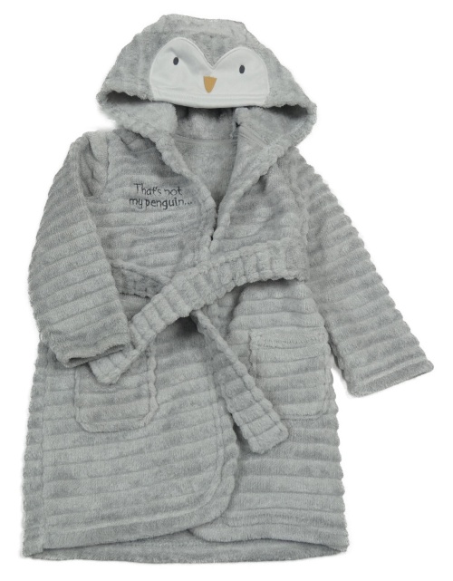 • Světlešedý žebrovaný plyšový župan s kapucí - tučňáček George