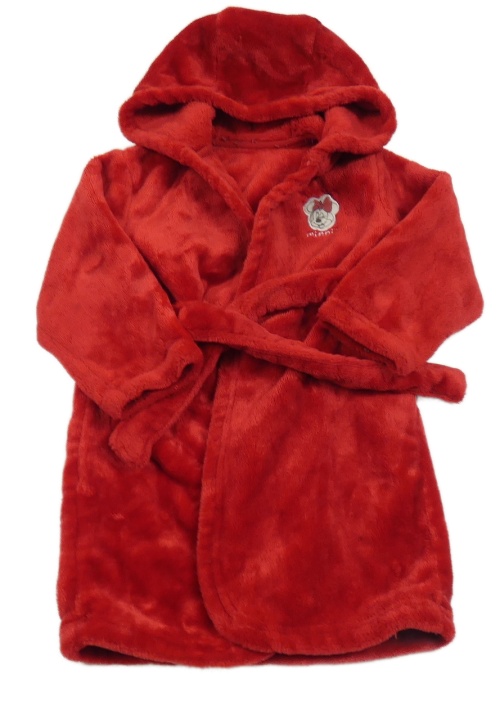 Červený chlupatý župan s Minnie a kapucí
