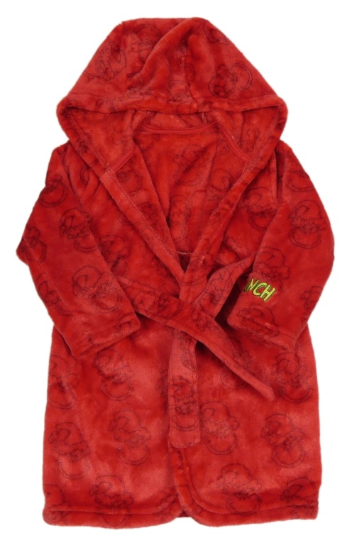 Červený plyšový vánoční župan s Grinchem a kapucí George
