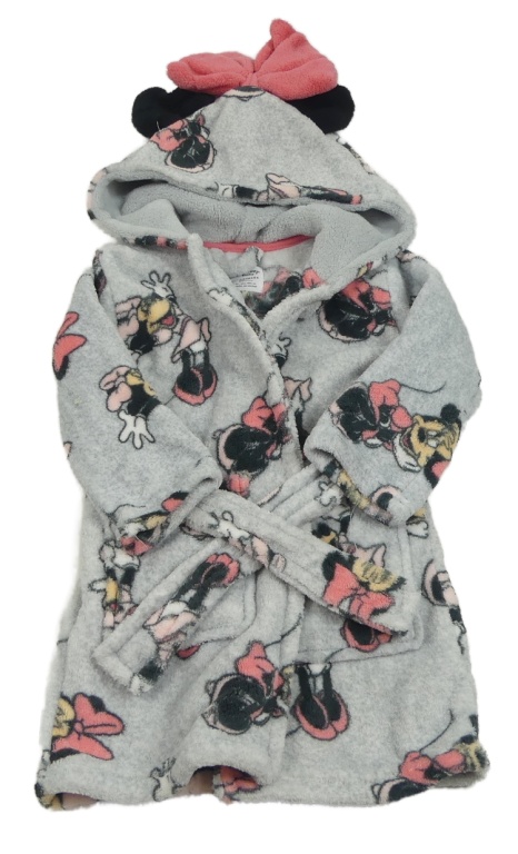 Šedý chlupatý župan s Minnie a kapucí Disney