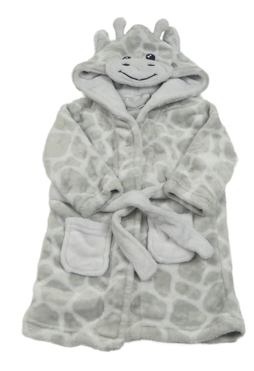 Bílo-šedý plyšový vzorovaný župan s kapucí - žirafa