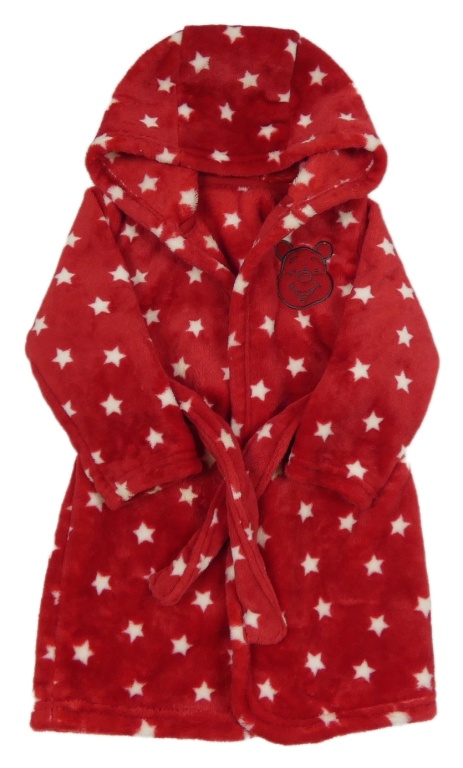 Červený chlupatý župan s hvězdičkami, medvídkem Pú a kapucí George