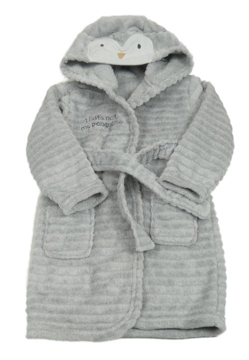 Šedý žebrovaný chlupatý župan s kapucí - tučňák George
