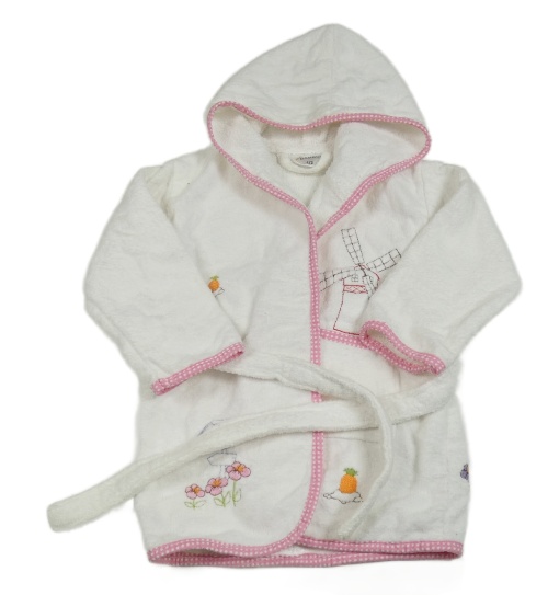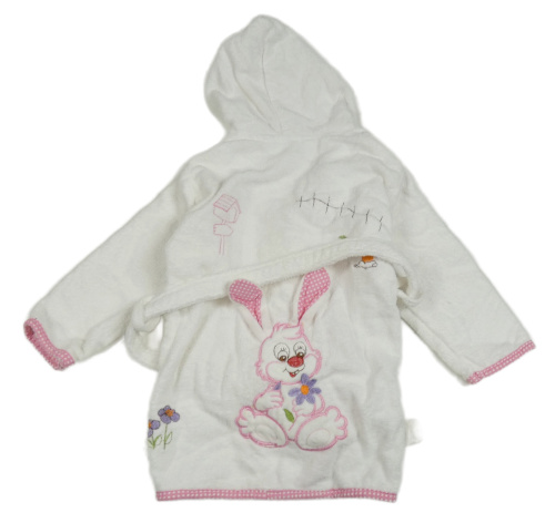 Bílo-růžový froté župan s větrným mlýnem a zajíčkem a puntíky a kapucí