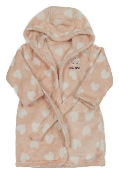 Světlerůžový chlupatý župan s Bambim, srdíčky a kapucí George
