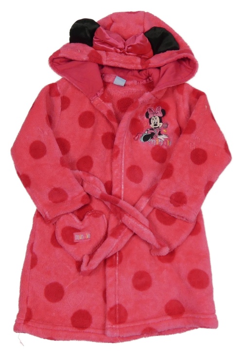 Fuchsiový plyšový puntíkatý župan s Minnie a kapucí Disney