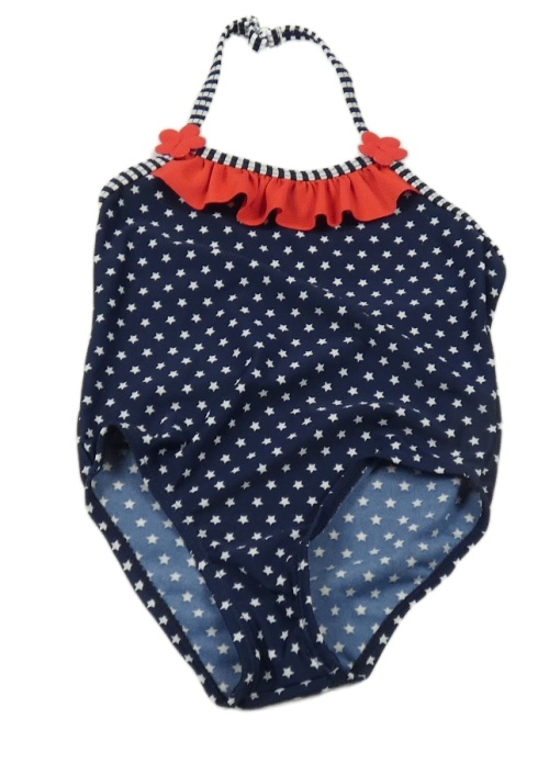 Tmavomodré jednodílné plavky s bílými hvězdičkami a volánkem
