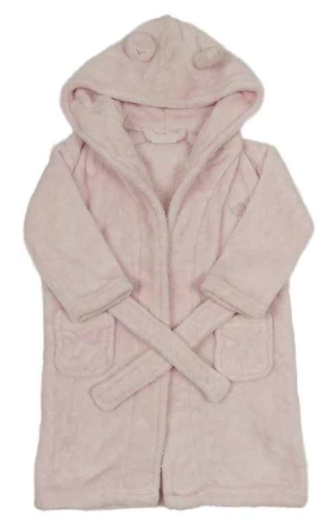 Světlerůžový plyšový župan s výšivkou a kapucí