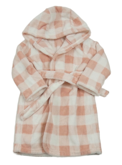 Bílo-růžový kostkovaný plyšový župan s kapucí George