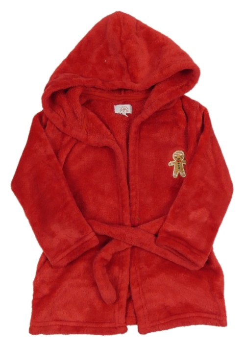 Červený chlupatý župan s perníčkem a kapucí