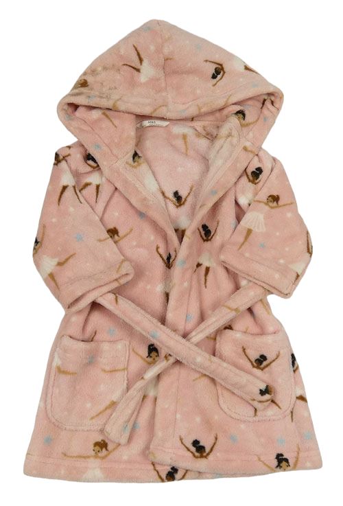 Světlerůžový plyšový župan s baletkami a kapucí M&S