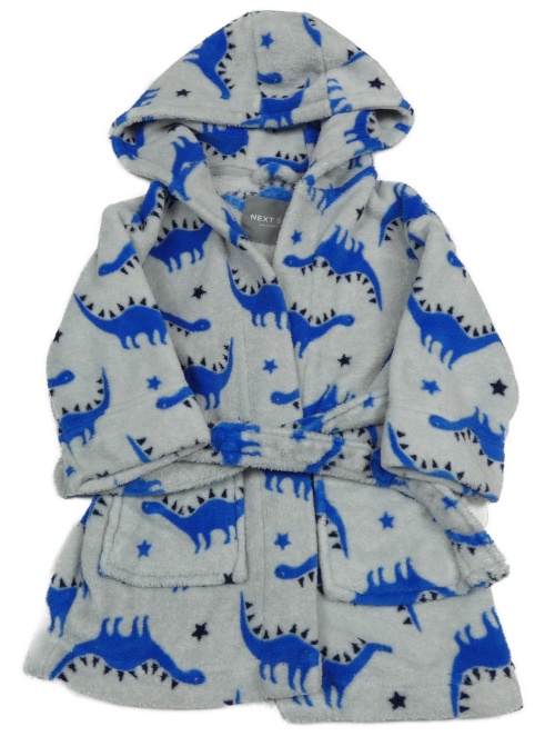 Šedý chlupatý župan s dinosaury a kapucí Next