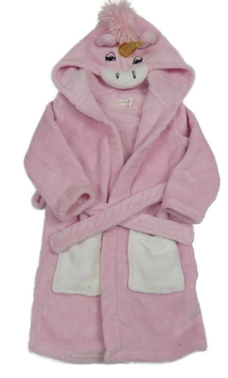 Růžovo-bílý plyšový župan s kapucí - jednorožec ORCHESTRA