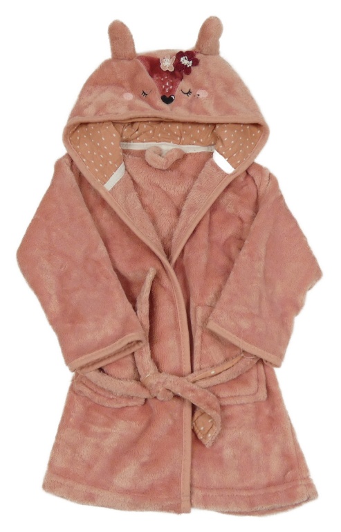 Růžový plyšový župan s kapucí - laň Topomini