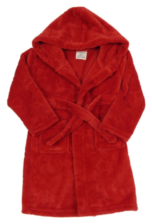 Červený plyšový župan s hvězdičkami a kapucí PRIMARK