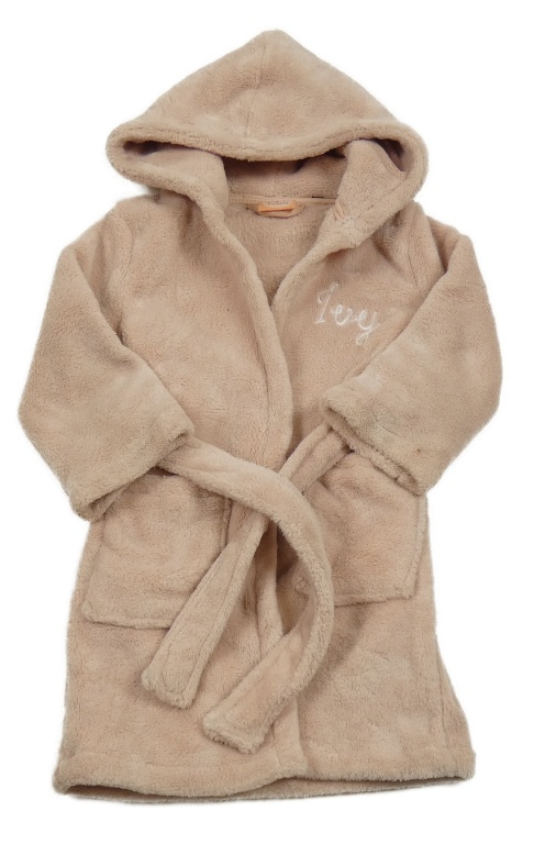 Světlerůžový chlupatý župan s kapucí