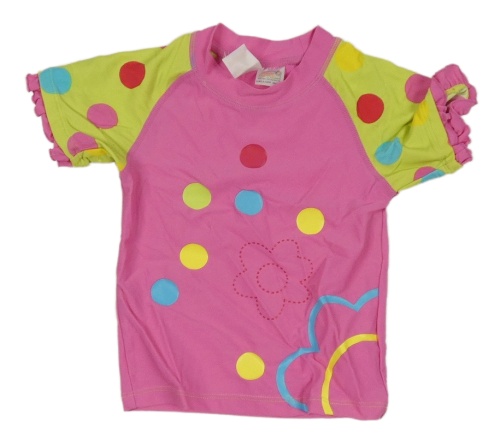Růžovo-světlezelené UV tričko s puntíky a květy a volánky PUSBLU