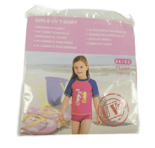 Nové - 2set - Růžovo-tmavomodré UV tričko s koníky + kraťasy