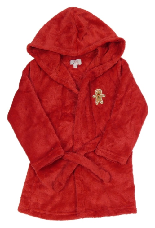 Červený plyšový župan s perníčkem a kapucí