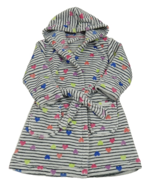 Bílo-barevný pruhovaný chlupatý župan se srdíčky a kapucí George
