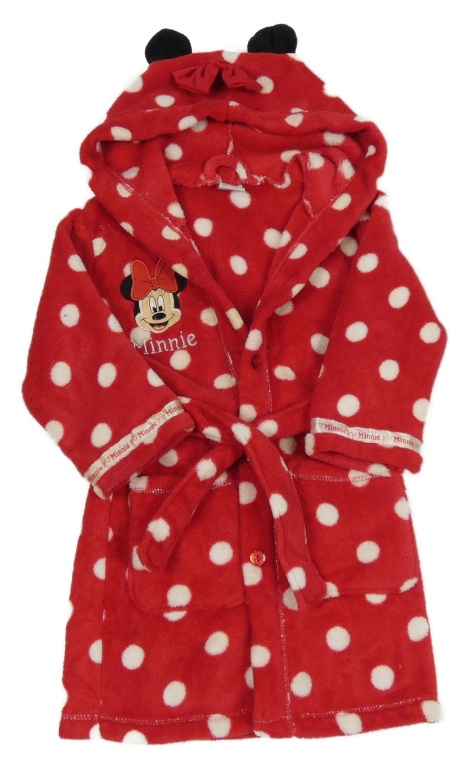 Černo-bílý puntíkatý plyšový župan s Minnie a kapucí Disney