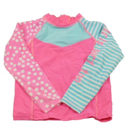 Neonově růžovo-modré UV triko s puntíky a proužky
