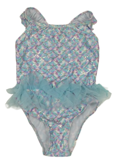 Světlemodro-růžové vzorované jednodílné plavky s tylovými volánky Primark