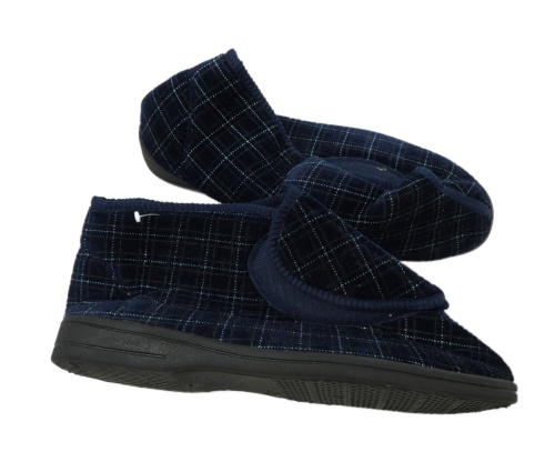 Pánské tmavomodré kostkované sametové papuče vel. 46