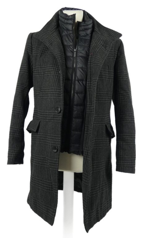 Pánský černo-šedý kostkovaný vlněný kabát C&A
