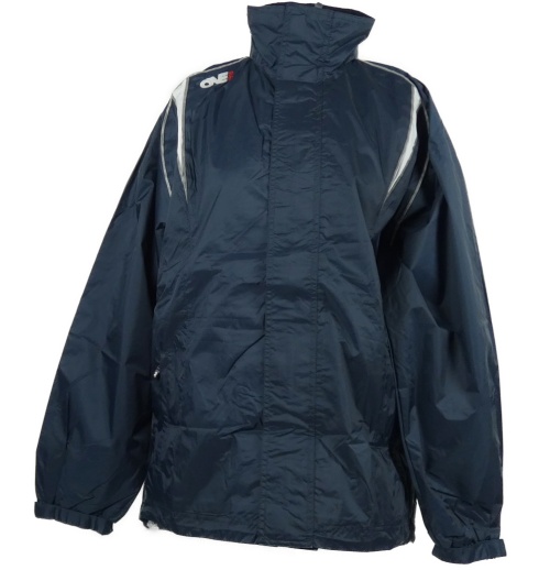 Nové - Pánská tmavomodrá šusťáková jarní bunda s pruhy a ukrývací kapucí