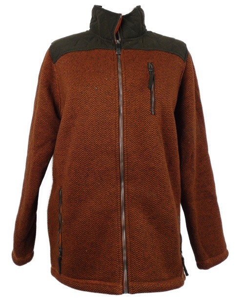 Pánská cihlovo-hnědá vzorovaná pletená zateplená bunda Cotton