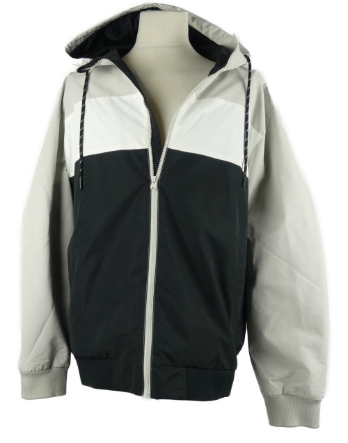 Pánská černo-béžovo-bílá šusťáková jarní bunda s kapucí Rainbow