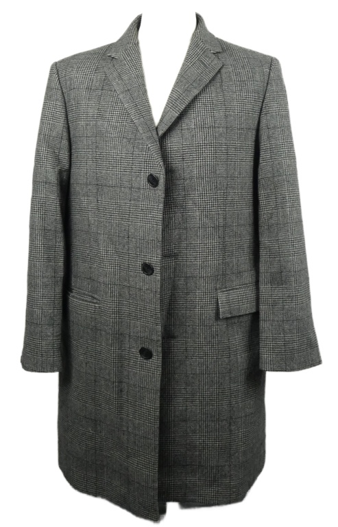 Pánský černo-bílý kostkovaný vlněný kabát French Connection vel. 42R