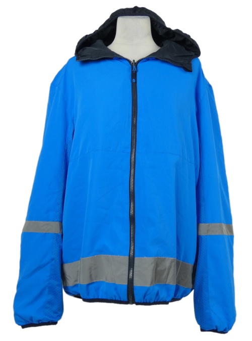 Pánská safírová šusťáková zateplená bunda s reflexními pruhy a kapucí Crivit