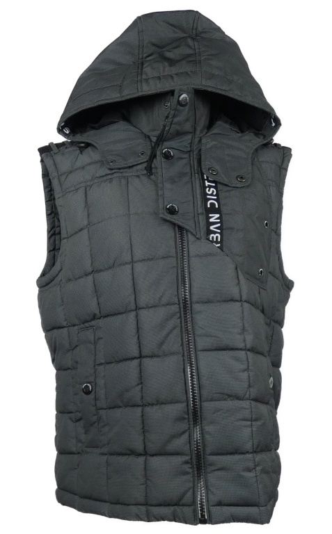 Pánská šedá šusťáková zateplená vesta s kapucí C&A