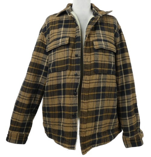 Pánská béžovo-tmavomodrá kostkovaná košilová zateplená bunda H&M
