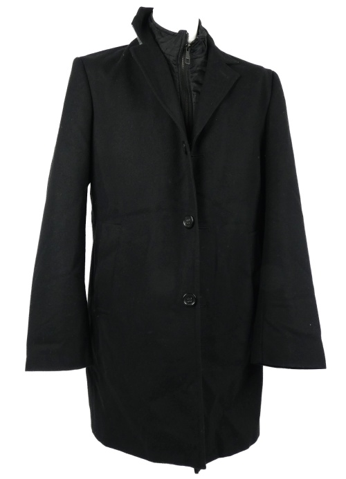 Pánský černý vlněný kabát s šusťákovou vsadkou S. Oliver