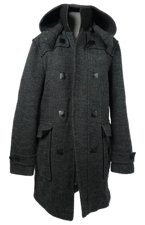 Pánský šedo-černý vlněný zateplený dlouhý kabát Esprit