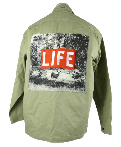 Pánská světlekhaki košilová bunda s potiskem Zara