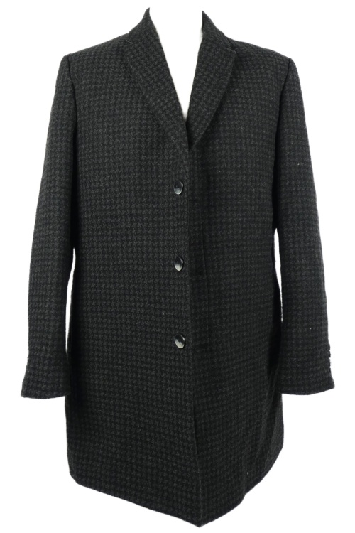 Pánský černo-šedý vzorovaný zateplený vlněný kabát McNeal